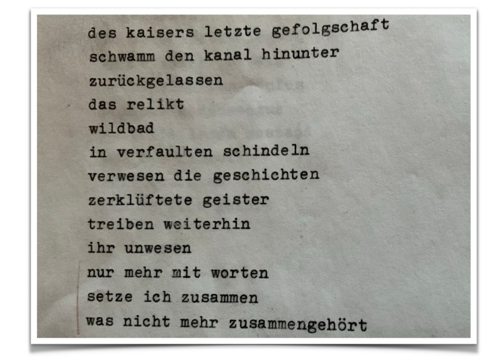Sieben Zeilen genügen Friedl, um eine Welt aufzuspannen: Atemnot und Eiszeit gegen Pasticceria und Eiscreme, süße Verlockung gegen düsteren Dunst. Die Provinz wird hier nicht als idyllischer Ort gezeichnet, sondern als erstickend süß, zuckrig überzogen – ein Bild für eine Gesellschaft, die Genuss predigt und Enge produziert.