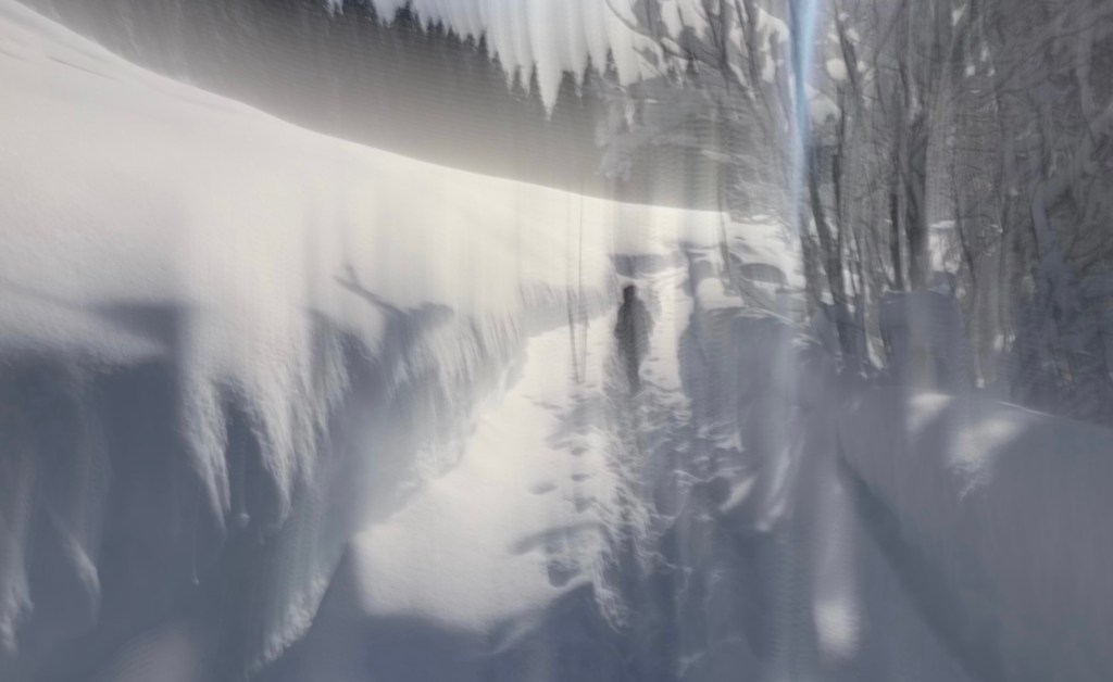 Alex bringt mir den Cappuccino und bittet Gerd Innerebner, Strukturleiter und Angestellten der EOS, mir das Wirtschaftsgebäude und das Wohnhaus zu zeigen. Ich ziehe meine Schuhe wieder an und gehe in den Stall zu den Schafen. Der Geruch von Heu und Tieren umfängt mich, während ich entlang der Schafsriele gehe und aufmerksam lausche, wie die fünfzehn Schafe hier am Burger Hof betreut werden. Gerd öffnet die Tür, und die Schafe, begleitet von ihren kleinen Lämmern, strömen hinaus in den Schnee. Bald schon werden zwei Esel dazukommen und, wie könnte es anders sein, Hühner mit ihrem eigenen Stall.